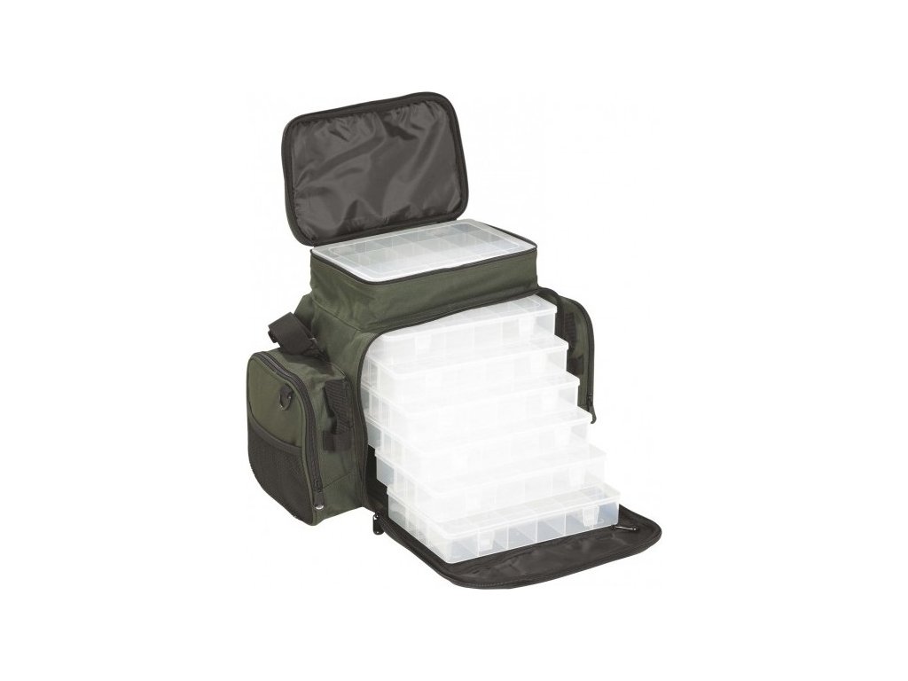Největší model této série se jmenuje Large. Nabízí celkem 7 boxů na širokou škálu nástrah a drobných předmětů potřebných klovu. Vnitřek je silně polstrovaný a bezpečný pro uložené věci, vnější strana je vyrobena zvoděodolného polyesteru 600D. Taška má také dvě prostorné postraní kapsy a jednu kapsu vepředu. Rozměry jsou: 45 x 30 x 28 cm.7145003Doplňkové parametry