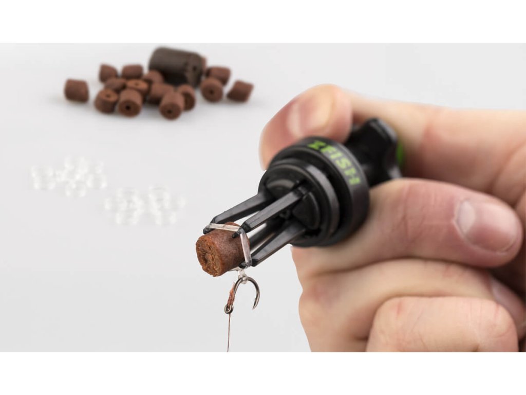 Navlékač kroužků Bait Bander je praktický nástroj, který slouží k rychlému a snadnému navléknutí elastického kroužku na nástrahu. Tento šikovný pomocník je ideální pro manipulaci s malými nástrahami a návnadami, a to zejména pro pelety, doumbless nebo podobnén nástrahy válcovitého tvaru o velikosti 4-12 mm.Díky Bait Banderu ušetříte čas a zvýšíte efektivitu, ať už chytáte kapry nebo jiné ryby.