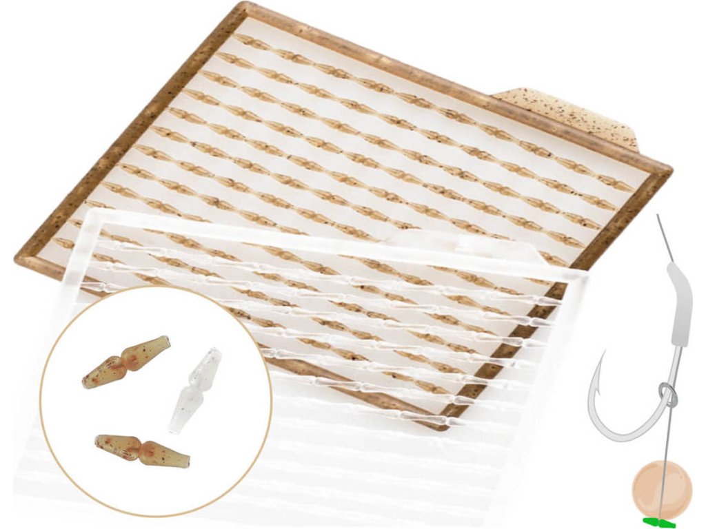 Balení obsahuje dvě sady zarážek: Jednu čirou a druhou transparentní hnědou pro dokonalé přizpůsobení nástraze.