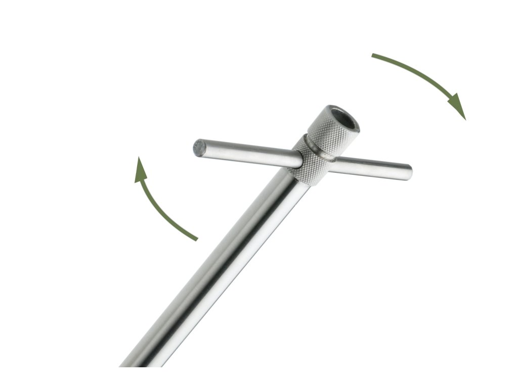 Extrémní nerezová vidlička s hrotem ve tvaru vrtáku a šroubovací objímkou pro snadnou aretaci výsuvu. Rukojeť pro snadné zavrtání do země je součástí dodávky. Po vyjmutí vnitřní části lze do vidličky Hardcore XL zasunout kompletní vidličku Hardcore a získat tak třídílnou, mimořádně stabilní a dlouhou vidličku.